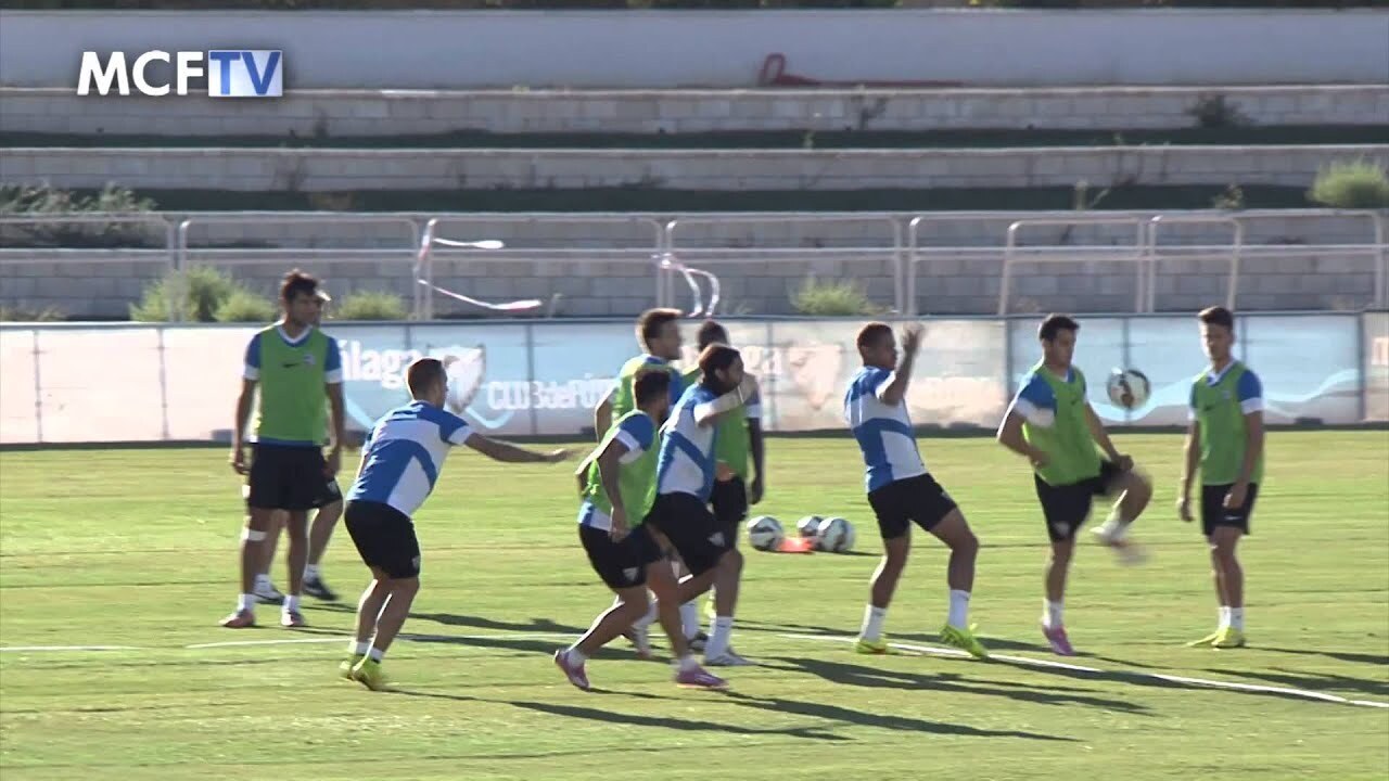 El Málaga Club de Fútbol se ejercitó esta mañana en la primera de las dos sesiones previstas en el Estadio de Atletismo 'Ciudad de Málaga', en la que practicó, sobre todo, la posesión y los lanzamientos a puerta. El director deportivo Mario Husillos prese
